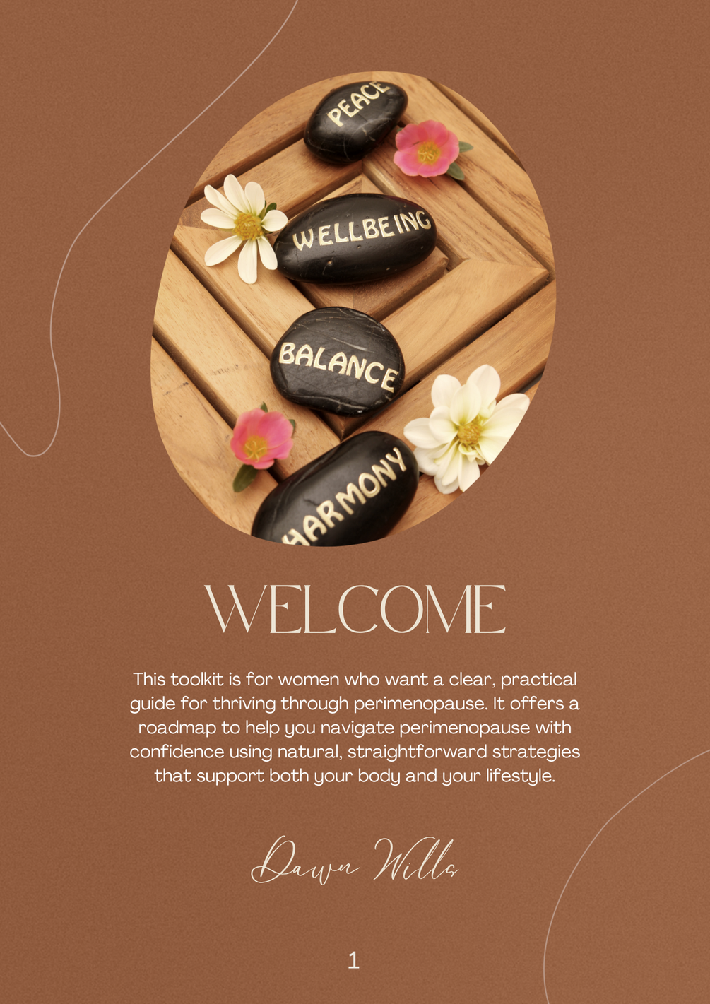 You’ll get a downloadable 32-page PDF toolkit that includes a practical mini-guide, symptom tracker, and reflection journal to help you manage perimenopause naturally.